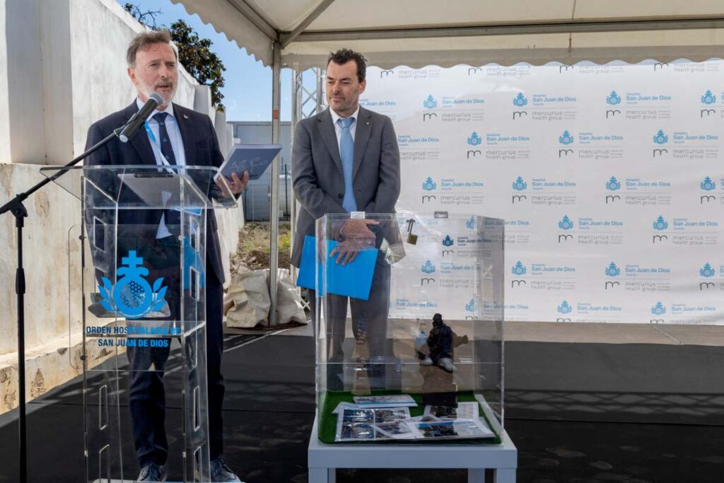 El Hospital San Juan de Dios de Tenerife ha celebrado esta mañana el acto de colocación de la primera piedra de su futuro edificio asistencial, que acogerá una Unidad de Oncología Integral y un área de Consultas Multiespecialidades. Este nuevo espacio, con una superficie de 1.930 m², supone un paso decisivo en la ampliación y modernización de los servicios sanitarios de la isla, especialmente en el ámbito de la atención oncológica.